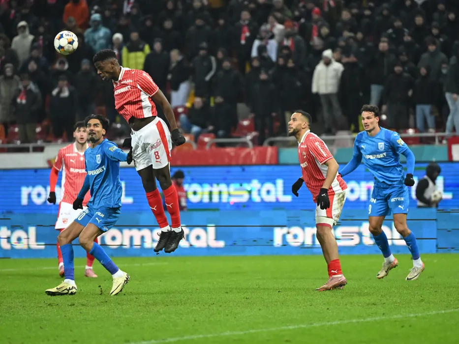 Stefan Baiaram, Vhakka Eddy Stelh Gnahore, Maxime James Sivis si Assad Al Islam Al Hamlawi in meciul de fotbal dintre Dinamo Bucuresti si Universitatea Craiova, din cadrul Superligii Superbet, desfasurat pe Arena Nationala din Bucuresti, luni 9 februarie 2026. © FOTO:Razvan Pasarica/SPORT PICTURES