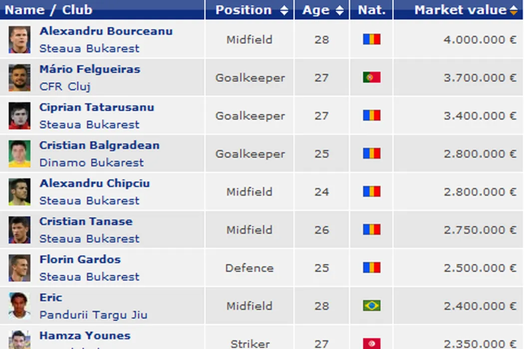 2013 a fost anul lui și acum e cel mai valoros jucător din Liga 1! TOPUL de 29 de milioane de euro pe care Reghe îl privește cu mândrie: 6 steliști între cei mai scumpi 10 fotbaliști din România