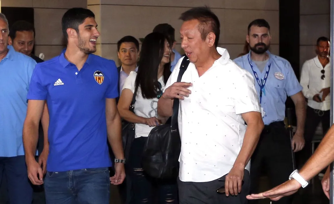Former PSG player Goncalo Guedes and the Singaporean billionaire Peter Lim arrive at Valencia airport. 29/08/2018.