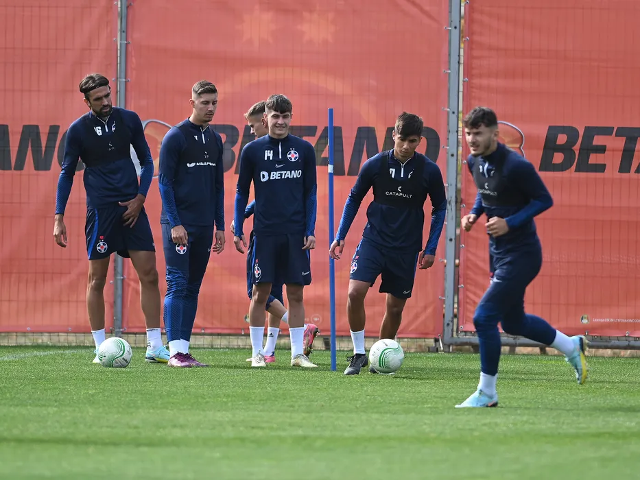 Fotbalistii stelisti Andrea Compagno, David Raul Miculescu, Matei Adrian Tanasa si Florinel Teodor Coman la antrenamentul oficial al celor de la FCSB de dinaintea meciului impotriva Silkeborg IF, din cadrul grupelor UEFA Europa Conference League, desfasurat la Baza de antrenament FCSB din Berceni, miercuri 12 octombrie 2022. © FOTO:Razvan Pasarica/SPORT PICTURES