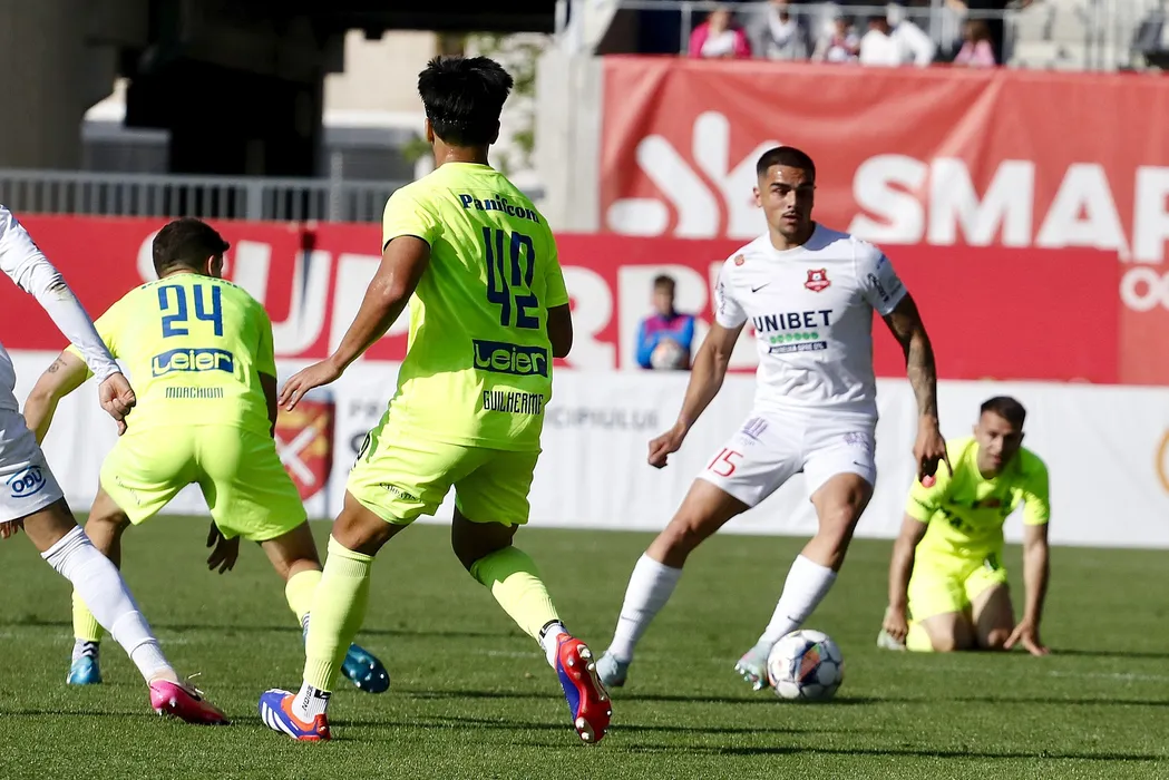 Goncalves Tiago Lisboa Silva in meciul de fotbal dintre AFC Hermannstadt Sibiu si Poli Iasi, contand petru Superliga Superbet Play-Out, desfasurat pe Stadionul Municipal din Sibiu, sambata 10 mai 2025. © FOTO: Valentin Macrea/SPORT PICTURES