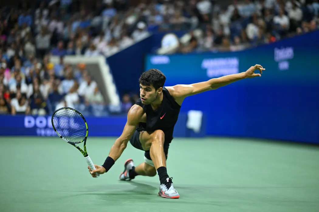 Carlos Alcaraz (ESP) during his second round match at the 2024 US Open at Billie Jean National Tennis Center in New York City, NY, USA, on August 29, 2024. Carlos Alcaraz found that out in New York on Thursday night, as Botic van de Zandschulp, world No. 74, knocked him out of the US Open in straight sets, 6-1, 7-5, 6-4. Photo by Corinne Dubreuil/ABACAPRESS.COM