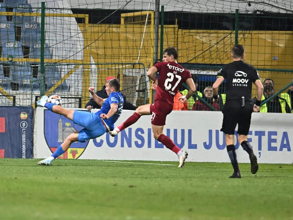 Alexandru Mihai Isfan si Matei Christian Ilie in meciul de fotbal dintre Gloria Buzau si CFR Cluj, contand pentru Superliga Superbet, desfasurat pe Stadionul Municipal din Buzau, vineri 1 noiembrie 2024. © FOTO:Razvan Pasarica/SPORT PICTURES