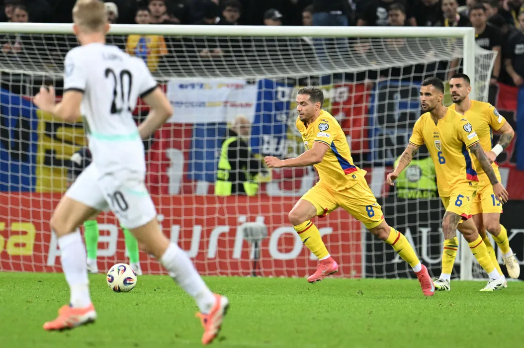 Alexandru Mihaita Chipciu si Marius Marin la meciul de fotbal dintre Romania si Austria, din cadrul Preliminariilor Campionatului Mondial 2026, desfasurat pe Arena Nationala din Bucuresti, duminica 12 octombrie 2025. © FOTO:Razvan Pasarica/SPORT PICTURES