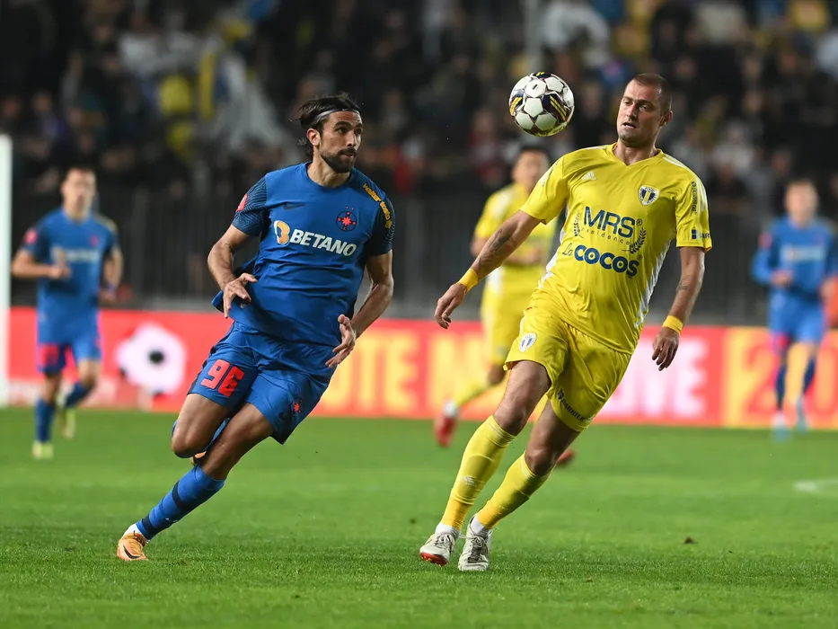 Andrea Compagno si Gabriel Sebastian Tamas in meciul de fotbal dintre Petrolul Ploiesti si FCSB, contand pentru Superliga Superbet, desfasurat pe Stadionul Ilie Oana din Ploiesti, duminica 9 octombrie 2022. © FOTO:Razvan Pasarica/SPORT PICTURES