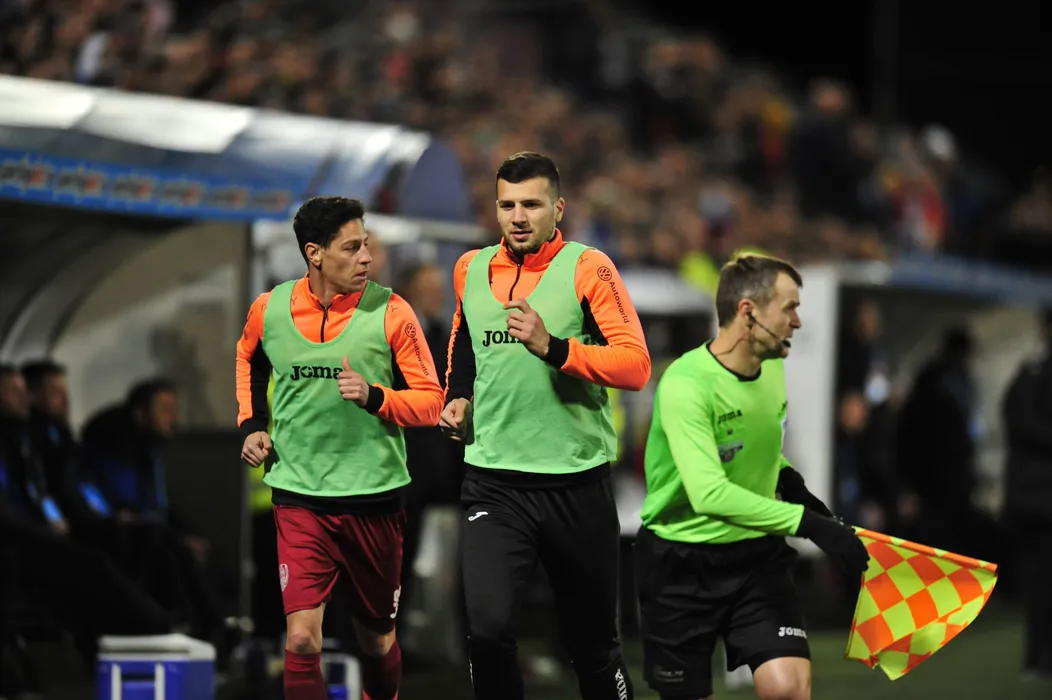 Mario Rondon (S) si George Tucudean (D), de la CFR Cluj, fac exercitii de incalzire, in timpul meciului de fotbal contra echipei FCSB din etapa a XXIII-a a Ligii 1, disputat pe stadionul Constantin Radulescu din Cluj-Napoca, duminica, 2 februarie 2020. DAN HORIA TAUTAN / MEDIAFAX FOTO
