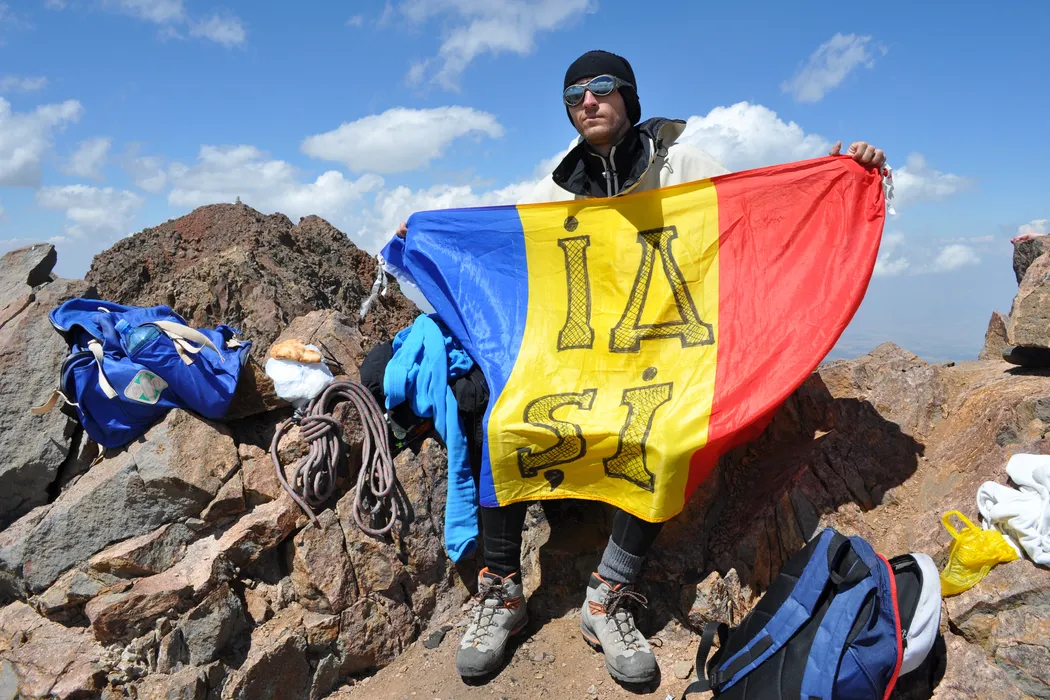 A dus drapelul României în toate colțurile lumii. A cucerit singur Mont Blanc, a învins boala Lyme, a „luat la pas” de la Kilimanjaro, la Etna și a simțit gerul de -50 de grade Celsius. „Bunicul meu lupta pe front cu tricolorul la piept” FOTO | #România100