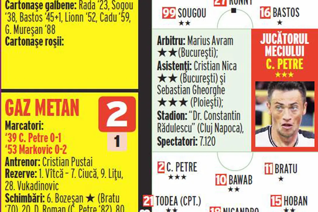 A explodat Gazul! Prima înfrângere pentru Jorge Costa:** CFR Cluj – Gaz Metan 0-2