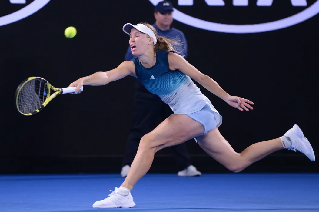 MELBOURNE, AUSTRALIA - JANUARY 18: Caroline Wozniacki of Denmark in action against Maria Sharapova of Russia (not seen) during Australian Open 2019 Women's Singles match in Melbourne, Australia on January 18, 2019. Recep Sakar / Anadolu Agency/ABACAPRESS.COM