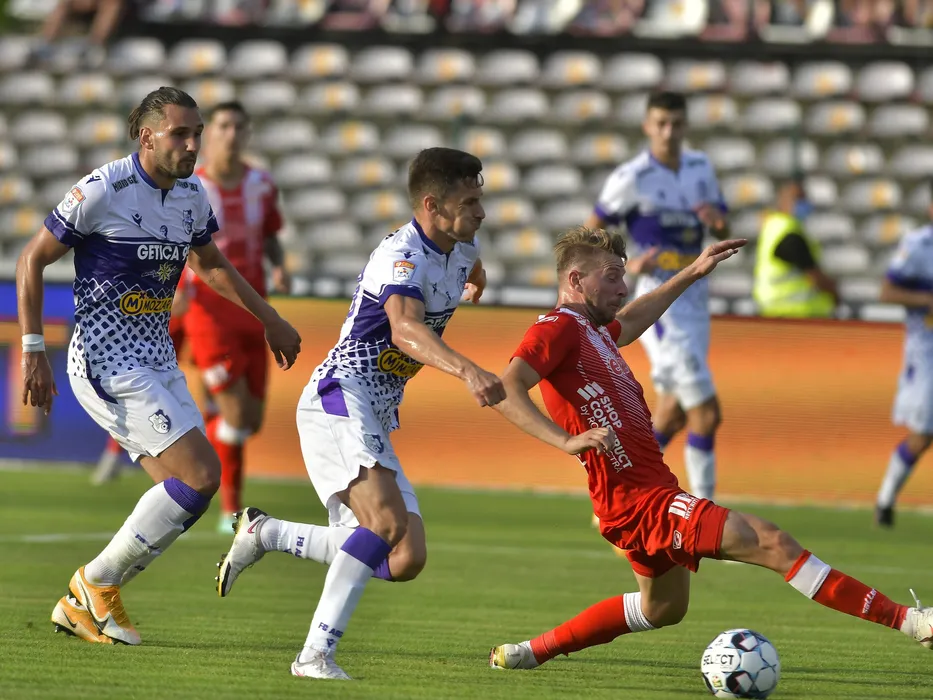 Deian Boldor, Nicolae Constantin Musat si Liviu Ion Antal in meciul de fotbal dintre FC Arges si UTA Arad, contand pentru Liga 1 Casa Pariurilor, desfasurat pe Stadionul Nicolae Dobrin din Pitesti, sambata 23 iulie 2021. © FOTO:Razvan Pasarica/SPORT PICTURES