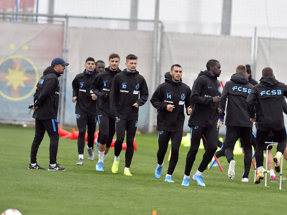 Fotbalistii de la FCSB Dragos Nedelcu,Florin Tanase,Thierry Moutinho si Juvhel Tsoumou la antrenamentul de dinaintea meciului cu Dinamo Bucuresti, din cadrul Ligii 1 Casa Pariurilor, desfasurat la Baza de antrenament FCSB din Berceni, vineri 4 octombrie 2019. © FOTO:Razvan Pasarica/SPORT PICTURES