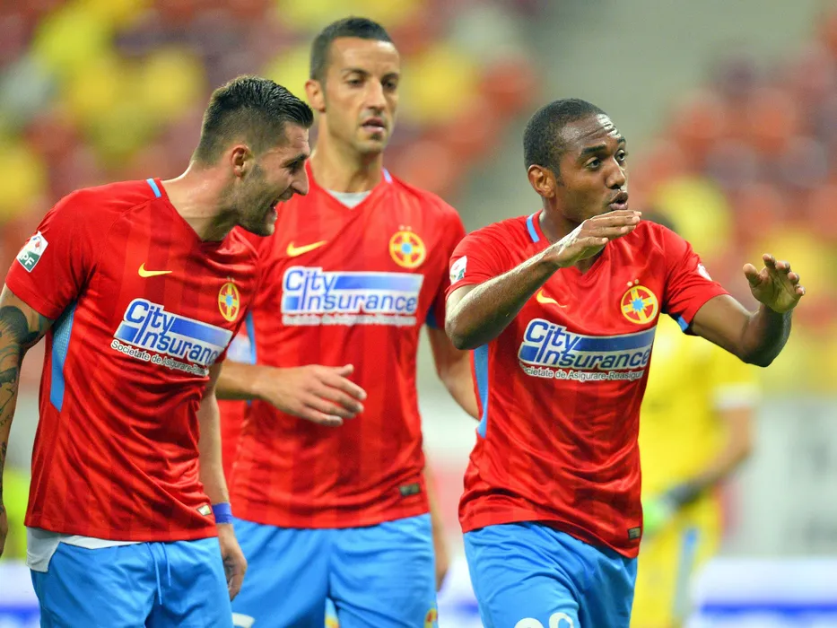 Bucurie stelista cu Ovidiu Popescu,William De Amorim si Marko Momcilovic in meciul de fotbal dintre FC Steaua Bucuresti si Gaz Metan Medias, contand pentru Liga 1 Betano, disputat pe sArena Nationala din Bucuresti, duminica 17 septembrie 2017. © FOTO Razvan Pasarica/SPORT PICTURES