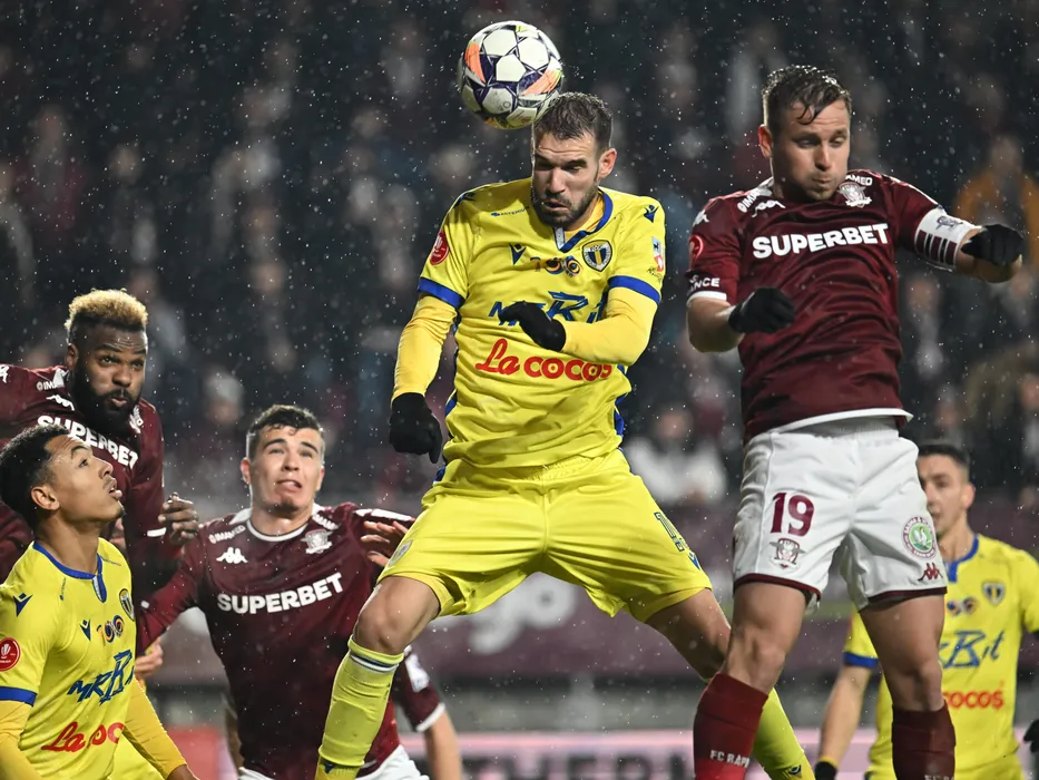 Yohan Cedric Benjamin Roche, Aaron Salem Boupendza, Alexandru Tudorie si Phillipe Răzvan Onea in meciul de fotbal dintre Rapid Bucuresti si Petrolul Ploiesti, din cadrul Superligii Superbet, desfasurat pe Superbet Arena-Giulesti din Bucuresti, vineri 29 noiembrie 2024. © FOTO:Razvan Pasarica/SPORT PICTURES