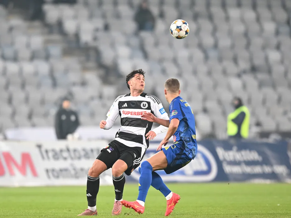 Atanas Ioan Trica si Oleksandr Safronov in meciul de fotbal dintre FC Universitatea Cluj si AFC Unirea 04 Slobozia, contand pentru Superliga Superbet, desfasurat pe Cluj Arena din Cluj-Napoca, sambata 24 ianuarie 2026. © FOTO:Flaviu Buboi/SPORT PICTURES