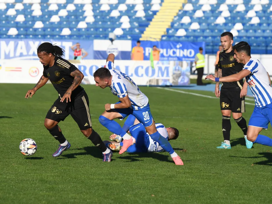 Hildeberto Jose Morgado Pereira, Dan Nicolae Nistor și Todor Todoroski în meciul de fotbal dintre Poli Iași si Universitatea Cluj, contând pentru SuperLiga Superbet, desfășurat pe Stadionul Emil Alexandrescu din Iași, sâmbătă 28 septembrie 2024. © FOTO: Tudi/SPORT PICTURES