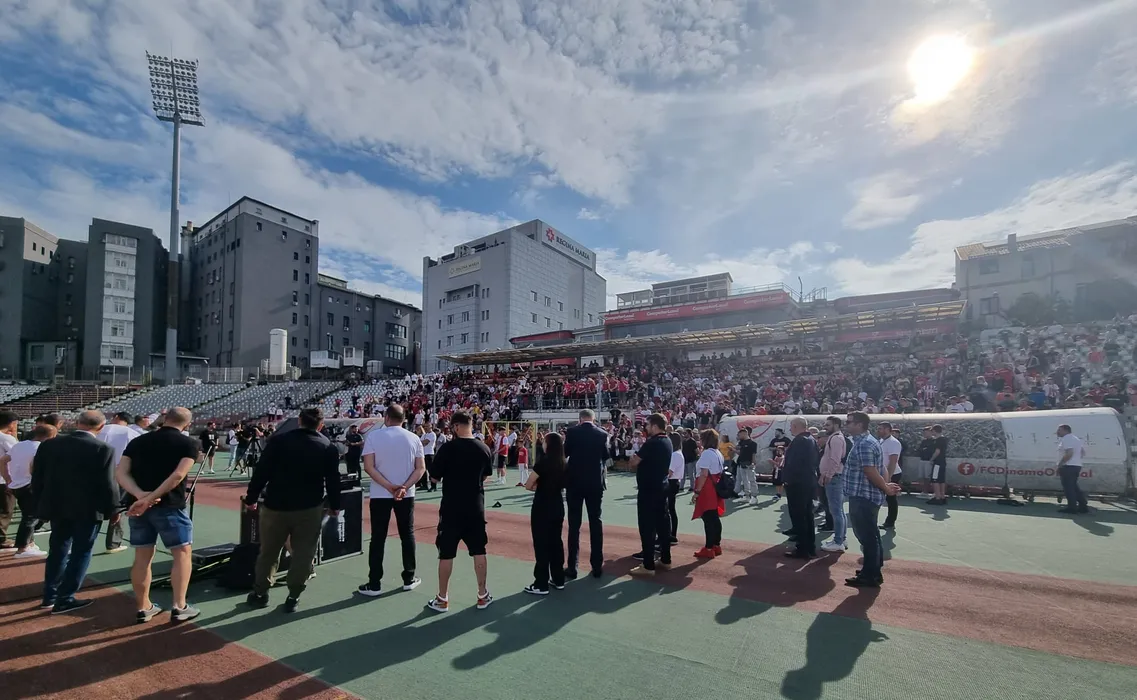 A început festivitatea organizată de Dinamo după revenirea în Superliga! Imagini spectaculoase surprinse pe stadionul din „Ștefan cel Mare” | VIDEO