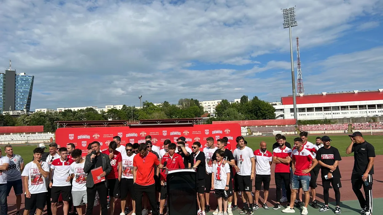 A început festivitatea organizată de Dinamo după revenirea în Superliga! Imagini spectaculoase surprinse pe stadionul din „Ștefan cel Mare” | VIDEO
