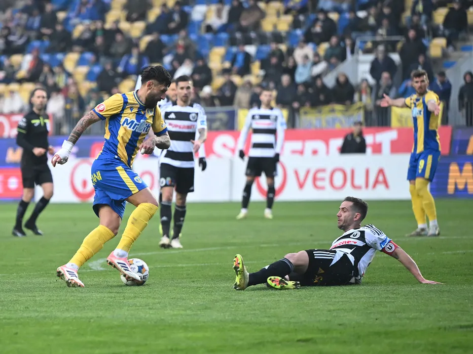 Paul Papp si Mihaita Alexandru Chipciu in meciul dintre Petrolul Ploiesti si Universitatea Cluj, contand pentru Superliga Superbet, desfasurat pe Stadionul Ilie Oana din Ploiesti, duminica 14 decembrie 2025. © FOTO:Razvan Pasarica/SPORT PICTURES
