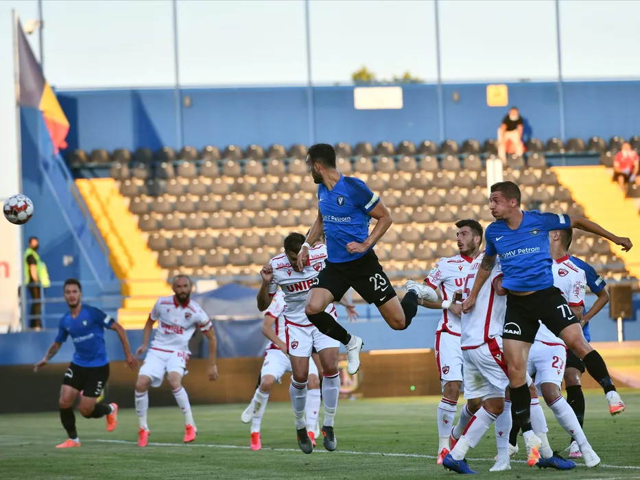 Virgil Eugen Ghita,Mattia Montini, Mihai Popescu si Vlad Alexandru Achim la faza golului in meciul de fotbal dintre FC Viitorul si Dinamo Bucuresti, contand pentru play-out-ul Ligii 1 Casa Pariurilor, disputat fara spectatori pe Arena centrala a Academiei Gheorghe Hagi din Ovidiu, joi 2 iulie 2020. © FOTO:Razvan Pasarica/SPORT PICTURES