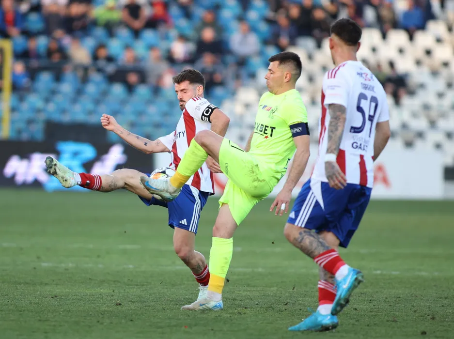 Mihai Catalin Bordeianu si Joao Pedro Santos Lameira, Jovan Markovic in meciul de fotbal dintre SC Oțelul Galati si Poli Iasi, contand pentru Superliga Superbet, desfasurat pe Stadionul Otelul din Galati, vineri 7 martie 2025. © FOTO: Sorin Pana/SPORT PICTURES