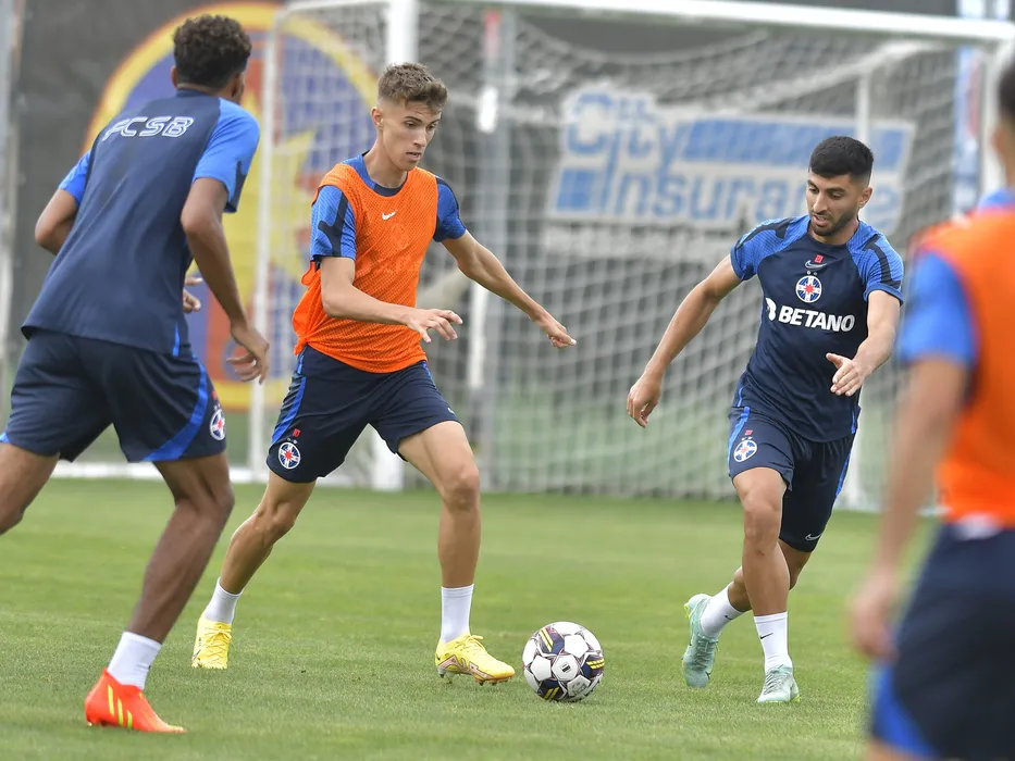 Fotbalistii stelisti Octavian George Popescu si Florin Vasile Achim la antrenamentul oficial de dinaintea meciului impotriva celor de la FC Dunajska Streda, din cadrul UEFA Europa Conference League, desfasurat la Baza de antrenament FCSB din Berceni, miercuri 10 august 2022. © FOTO:Razvan Pasarica/SPORT PICTURES