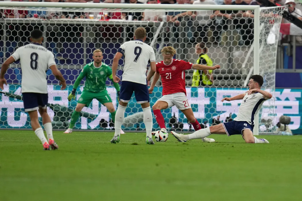 FRANKFURT, GERMANY - JUNE 20: Morten Hjulmand (21) of Denmark in action during the 2024 European Football Championship (EURO 2024) Group C football match between Denmark and England at the Frankfurt Arena in Frankfurt, Germany on June 20, 2024. Mahmut Serdar Alakus / Anadolu/ABACAPRESS.COM/HEPTA/SPORT PICTURES