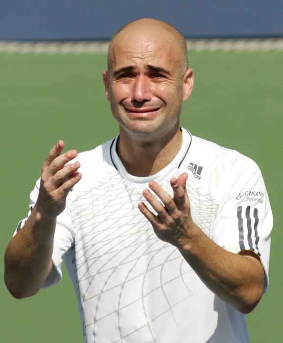 Andre Agassi of the US cries 03 September 2006 as he blows a kiss to the crowd after losing to Benjamin Becker of Germany 7-5, 6-7 (4/7), 6-4, 7-5 in the third round of the US Open Tennis Championships in Flushing Meadows, New York. Agassi retired from tennis after the match.,Image: 18983853, License: Rights-managed, Restrictions: , Model Release: no, Credit line: Profimedia