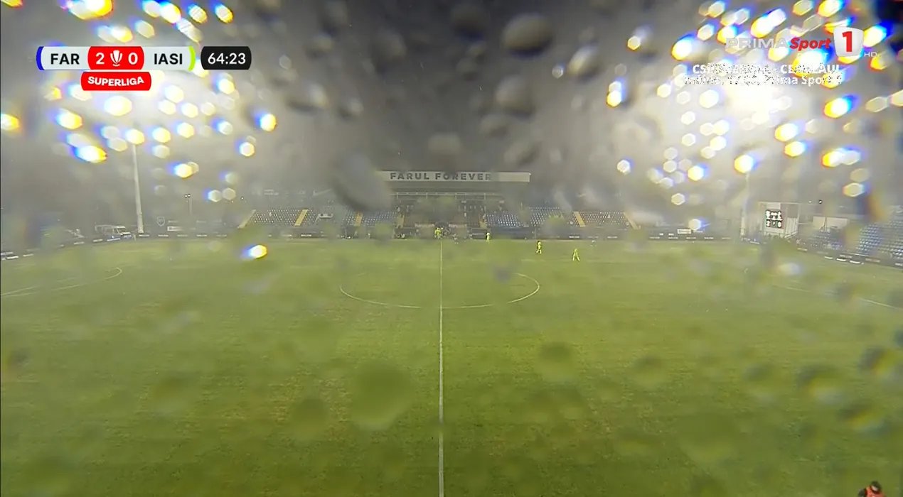A picat nocturna, s-a „rupt” cerul! Meciul Farul Constanța – Poli Iași a fost întrerupt a doua oară din cauza ploii torențiale. Ce decizie a luat arbitrul Horia Mladinovici