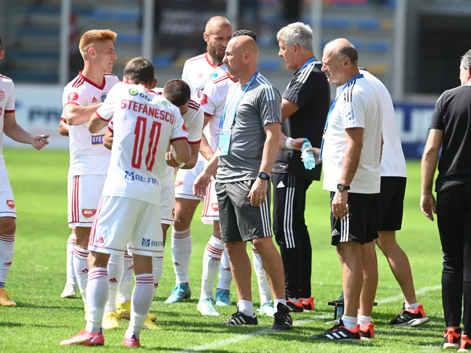 Andres Mihai Dumitrescu alaturi de Robert Ilyes si Cristiano Bergodi la o pauza de hidratare luata in meciul de fotbal dintre Chindia Targoviste si Sepsi OSK Sfantu Gheorghe, contand pentru Superliga Superbet, desfasurat pe Stadionul Ilie Oana din Ploiesti, sambata 10 septembrie 2022. © FOTO:Razvan Pasarica/SPORT PICTURES