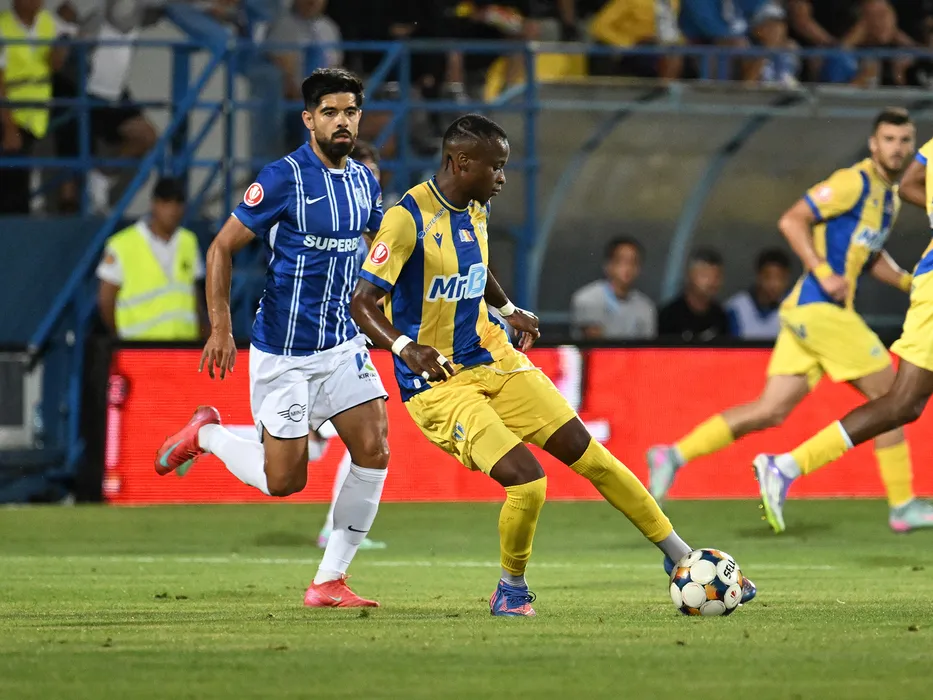 Ionuț Daniel Vână si Danel Jordan Dongmo in meciul de fotbal dintre Farul Constanta si Petrolul Ploiesti, contand pentru Superliga Superbet, desfasurat pe Stadionul central al Academiei Gheorghe Hagi din Ovidiu, luni 1 septembrie 2025. © FOTO:Razvan Pasarica/SPORT PICTURES