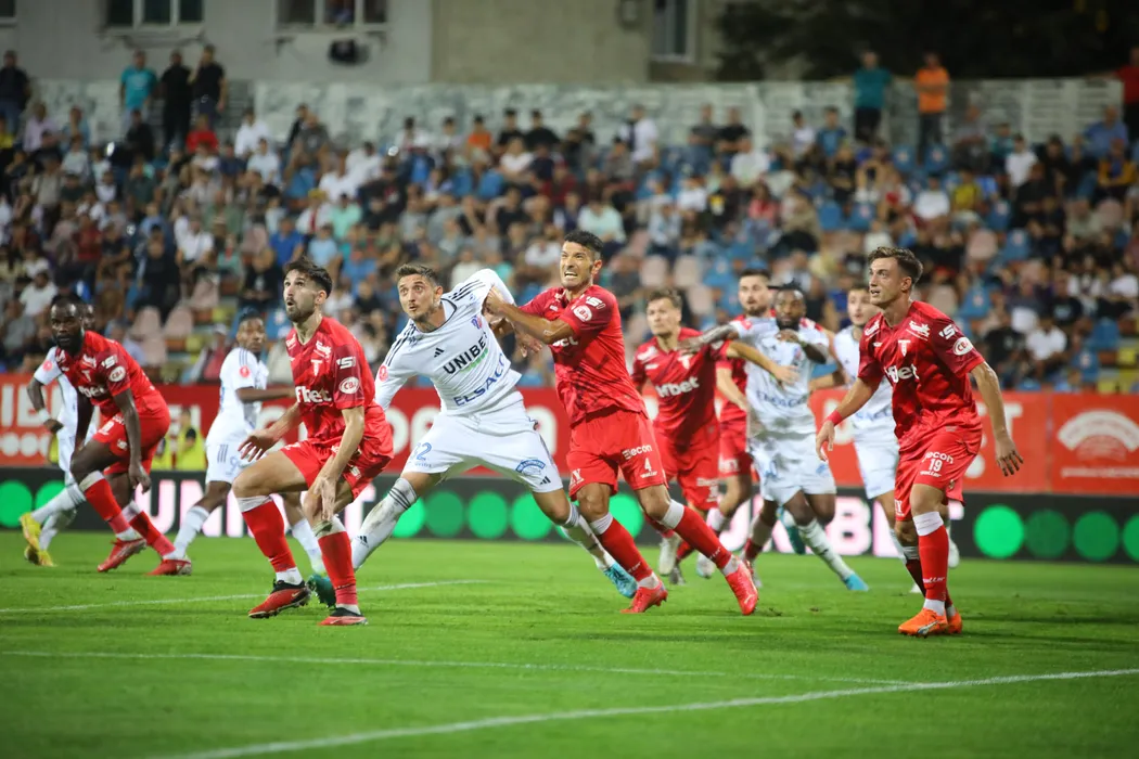 Alin Seroni in lupta cu Alexandru Benga in meciul de fotbal dintre FC BOTOSANI si UTA ARAD, contand pentru Superliga Superbet, desfasurat pe Stadionul Municipal din Botosani, sambata 23 septembrie 2023. © FOTO: Ionut Tabultoc/SPORT PICTURES