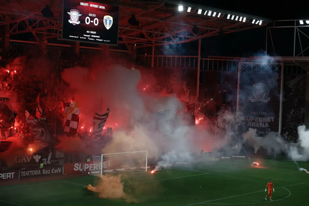 A venit Revelionul în Giulești! Spectacol pirotehnic fabulos făcut de rapidiști la meciul cu Petrolul: pompierii obligați să intervină de urgență | FOTO