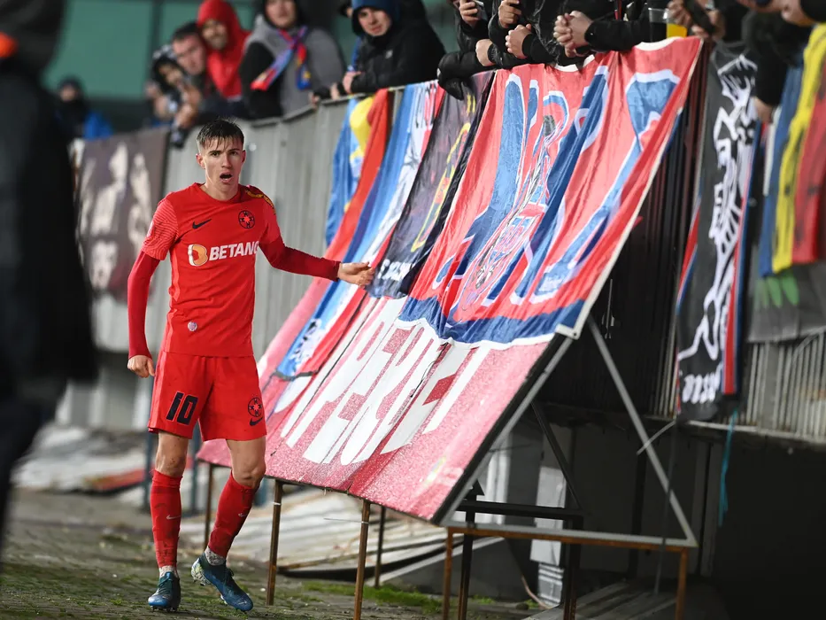 Octavian George Popescu saluta galeria la iesirea de pe teren din meciul de fotbal dintre Chindia Targoviste si FCSB, contand pentru Superliga Superbet, desfasurat pe Stadionul Ilie Oana din Ploiesti, duminica 11 decembrie 2022. © FOTO:Razvan Pasarica/SPORT PICTURES