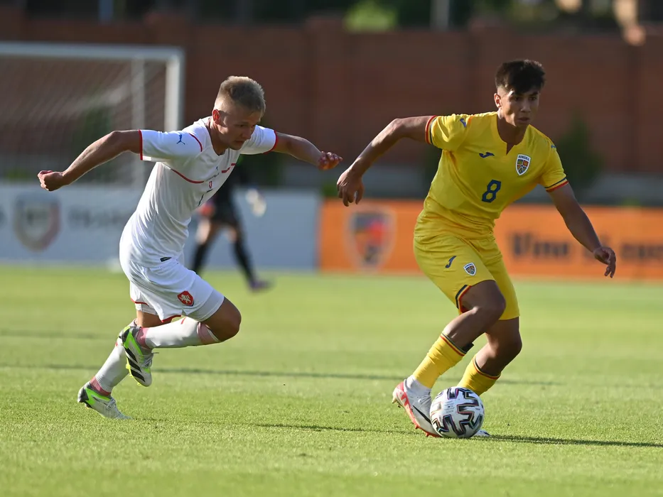 Matĕj Šin si Alexandru Musi in meciul amical de fotbal dintre Romania U20 si Cehia U20, desfasurat pe Stadionul Eugen Popescu din Targoviste, joi 7 septembrie 2023. © FOTO:Razvan Pasarica/SPORT PICTURES