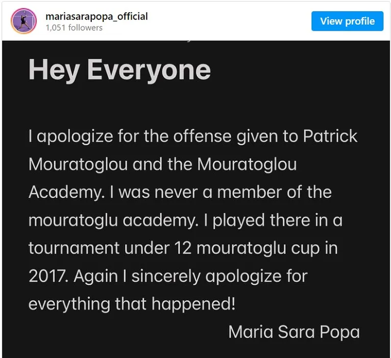 Absolut șocant! Românca Sara Maria Popa, cea care lansase acuzații grave de dopaj împotriva celor din academia lui Patrick Mouratoglou, și-a retras declarațiile într-un mod incredibil