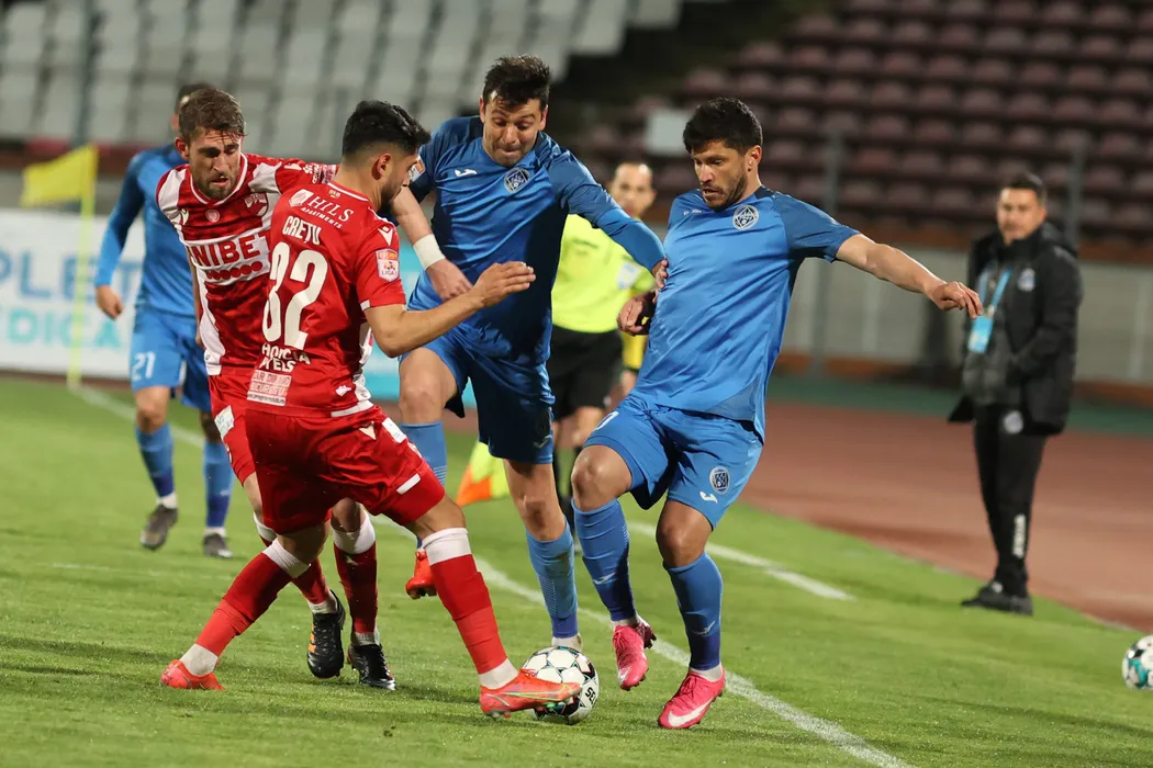 Raul Andrei Rusescu, Cristian Tanase si Geani Mihai Cretu in meciul de fotbal dintre Dinamo Bucuresti si Academica Clinceni, contand pentru Liga 1 Casa Pariurilor, desfasurat fara spectatori pe Stadionul Dinamo din Bucuresti, vineri 9 aprilie 2021. © FOTO:Gheorghe Fluster/SPORT PICTURES