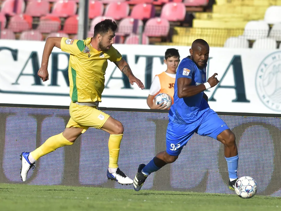 Ionut Balaur si Michael Junior Omoh in meciul de fotbal dintre Academica Clinceni si CS Mioveni, contand pentru Liga 1 Casa Pariurilor, desfasurat pe Stadionul Dinamo din Bucuresti, luni 30 august 2021. © FOTO:Razvan Pasarica/SPORT PICTURES