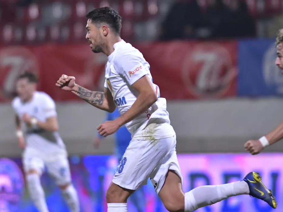 Gabriel Cristian Iancu se bucura dupa un gol marcat in meciul de fotbal dintre Academica Clinceni si Farul Constanta, restanta contand pentru Liga 1 Casa Pariurilor, desfasurat pe Stadionul Marin Anastasovici din Giurgiu, joi 17 februarie 2022. © FOTO:Razvan Pasarica/SPORT PICTURES
