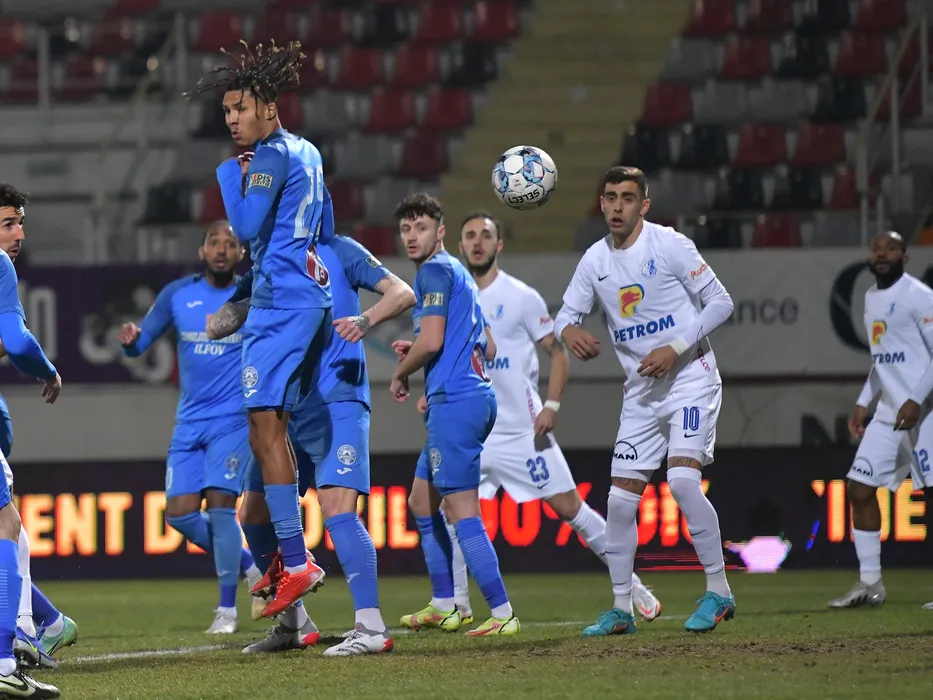 Jeremy Jimmy Thophile Corinus si Jefte Betancor Sanchez in meciul de fotbal dintre Academica Clinceni si Farul Constanta, restanta contand pentru Liga 1 Casa Pariurilor, desfasurat pe Stadionul Marin Anastasovici din Giurgiu, joi 17 februarie 2022. © FOTO:Razvan Pasarica/SPORT PICTURES
