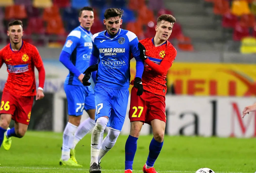 Cristian Alexandru Albu si Darius Dumitru Olaru in meciul de fotbal dintre FCSB si Academica Clinceni, contand pentru Liga 1 Casa Pariurilor, disputat pe Arena Nationala din Bucuresti, luni 10 februarie 2019. © FOTO:Razvan Pasarica/SPORT PICTURES