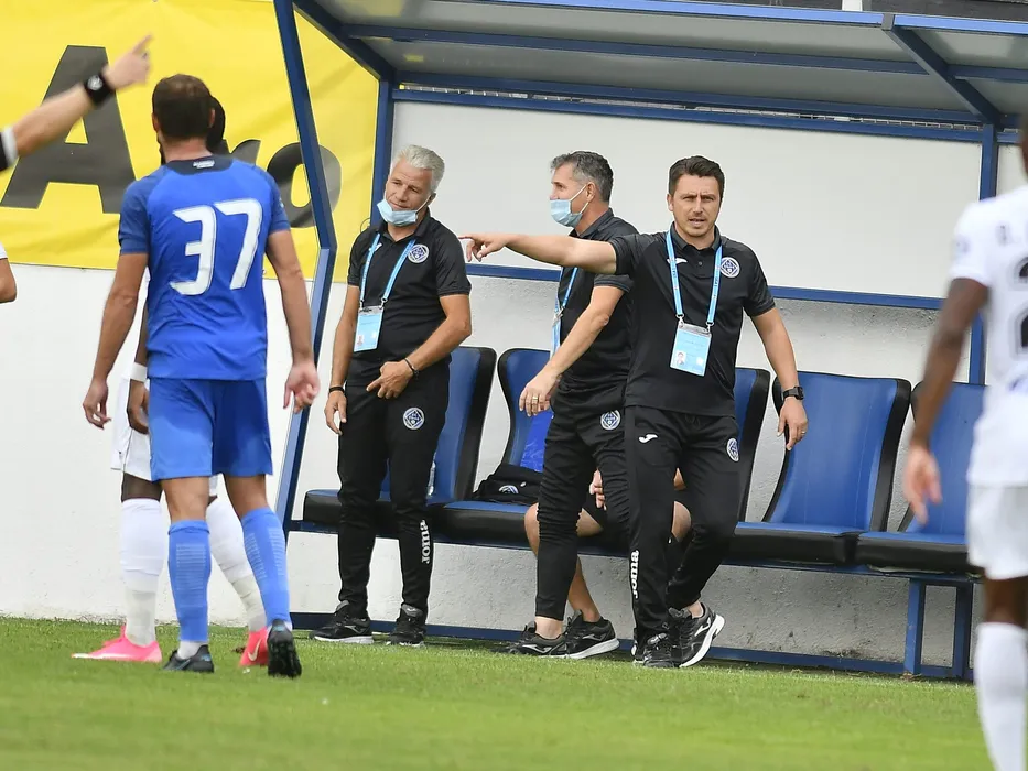 Marin Duna, Iosif Biro si Ilie Poenaru in meciul de fotbal dintre Academica Clinceni si Gaz Metan Medias, contand pentru Liga 1 Casa Pariurilor, desfasurat pe Clinceni Arena din Clinceni, sambata 26 septembrie 2020. © FOTO:Razvan Pasarica/SPORT PICTURES