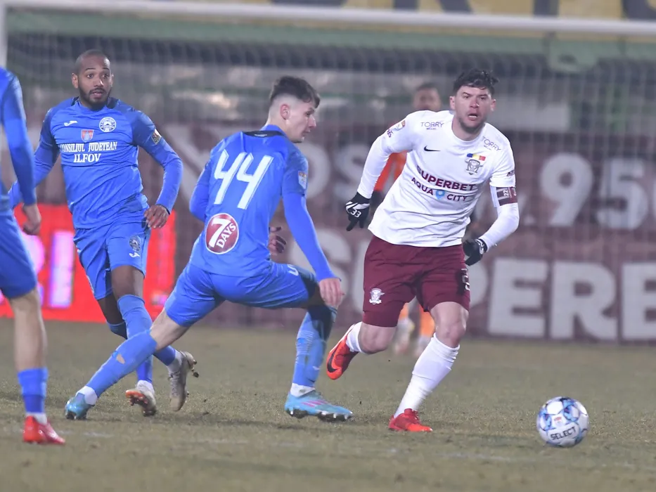 William Douglas De Amorim, Valentin Laurentiu Dumitrache si Cristian Ionut Sapunaru in meciul de fotbal dintre Rapid Bucuresti si Academica Clinceni, contand pentru Liga 1 Casa Pariurilor, desfasurat pe Stadionul Orasenesc din Mioveni, sambata 5 martie 2022. © FOTO:Razvan Pasarica/SPORT PICTURES