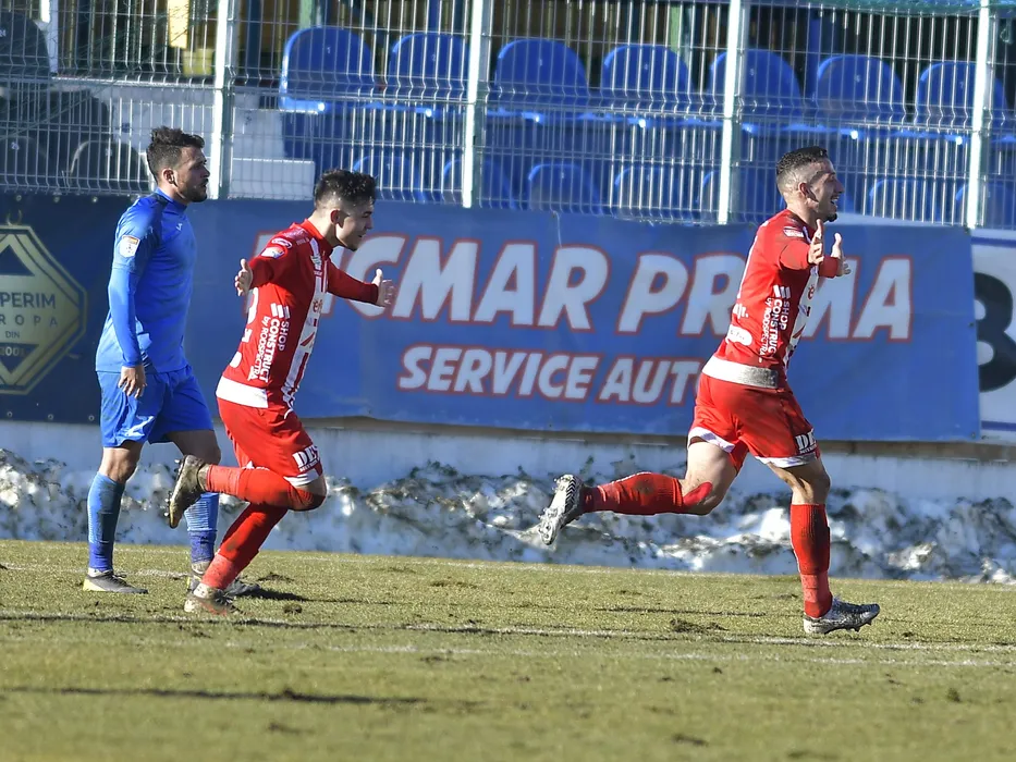 Roger Junio Rodrigues Figueira se bucura dupa un gol marcat alaturi de Denis Alex Rusu in meciul de fotbal dintre Academica Clinceni si UTA Arad, contand pentru Liga 1 Casa Pariurilor, desfasurat pe Clinceni Arena din Clinceni, joi 4 februarie 2021. © FOTO:Razvan Pasarica/SPORT PICTURES