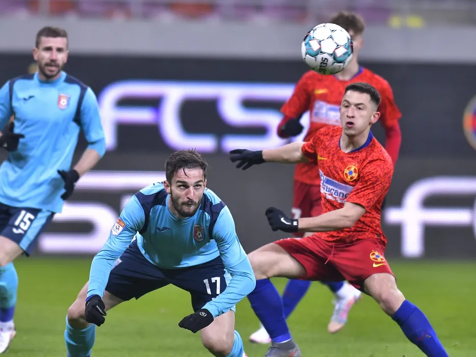 Andrei Ovidiu Pitian si Olimpiu Vasile Morutan in meciul de fotbal dintre FCSB si Chindia Targoviste, contand pentru Liga 1 Casa Pariurilor, desfasurat fara spectatori pe Arena Nationala din Bucuresti, sambata 20 februarie 2021. © FOTO:Razvan Pasarica/SPORT PICTURES