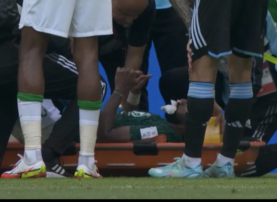 Accidentare horror în Argentina – Arabia Saudită! Fundașul Shahrani, transportat de urgență la spital după ce a fost lovit de coechipierul său cu genunchiul în gât | FOTO