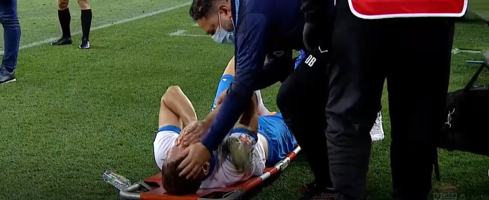 Universitatea Craiova – Poli Iași | Accidentare horror pentru Elvir Koljic, după o intrare a lui Marius Mihalache. Jucătorul din Bănie, scos pe targă de pe teren | FOTO