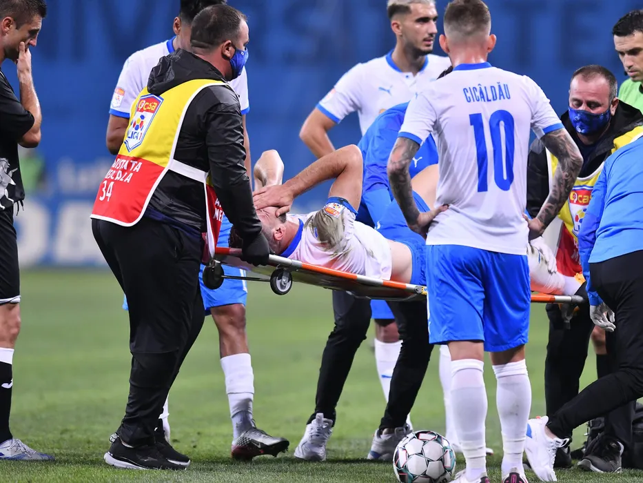 Elvir Koljic accidentat in meciul de fotbal dintre Universitatea Craiova si CSM Politehnica Iasi, contand pentru Liga 1 Casa Pariurilor, desfasurat fara spectatori pe Stadionul Ion Oblemenco din Craiova, vineri 2 octombrie 2020. © FOTO:Razvan Pasarica/SPORT PICTURES