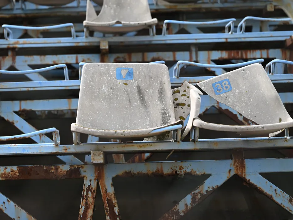 Tribuna degradata surpinsa la antrenamentul rugbystilor de la Lupii Bucuresti desfasurat pe Stadionul Cotroceni din Bucuresti, miercuri 25 septembrie 2024. © FOTO:Razvan Pasarica/SPORT PICTURES