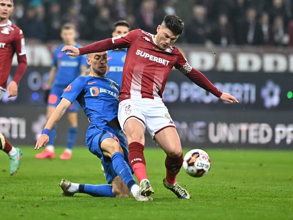 Mihai Daniel Lixandru si Cristian Ionut Sapunaru in meciul de fotbal dintre Rapid Bucuresti si FCSB, din cadrul Superligii Superbet, desfasurat pe Arena Nationala din Bucuresti, sambata 9 martie 2024. © FOTO:Razvan Pasarica/SPORT PICTURES
