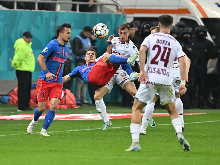 Marius Ștefănescu, Darius Dumitru Olaru si Claudiu Valentin Micovschi in meciul de fotbal dintre FCSB si Rapid Bucuresti, contand pentru Superliga Superbet, desfasurat pe Arena Nationala din Bucuresti, duminica 27 octombrie 2024. © FOTO:Razvan Pasarica/SPORT PICTURES